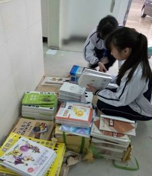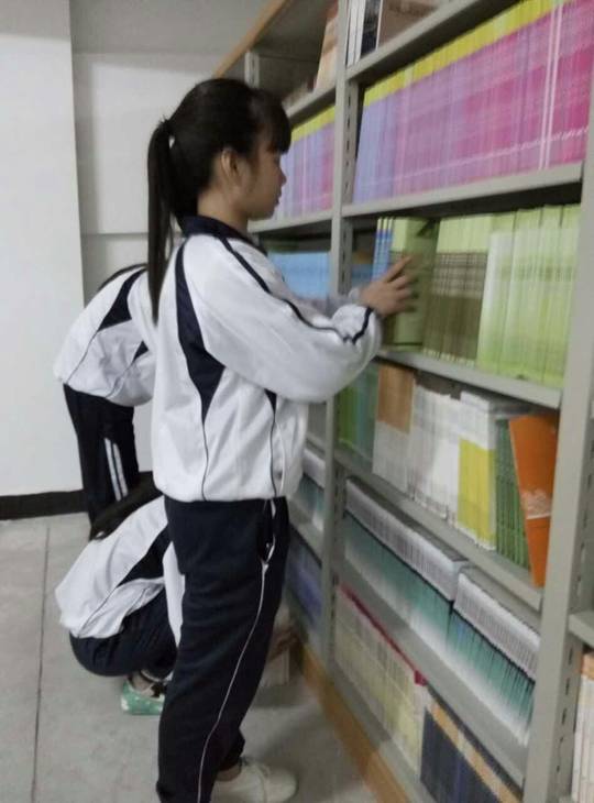 (图一)学生正在将书籍归类整理