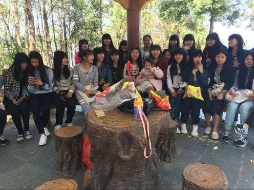 阳光明媚的周日上午,登山人群较多,全体同学说说笑笑享受着美好的集体活动时间。