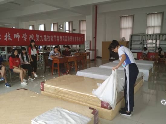 作为准“酒店人”,过硬的岗位技能及优良的服务水平是必不可少的。为挖掘在校的准“酒店人”的潜力,充分调动学生学习酒店相关技能的热情和积极性,5月20日下午,在实训楼B402举办了客房服务技能之客房用品整理竞赛项目的决赛,从全年级中脱颖而出的20名选手参加了决赛。