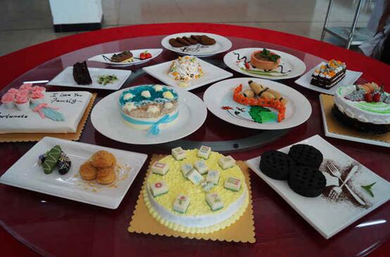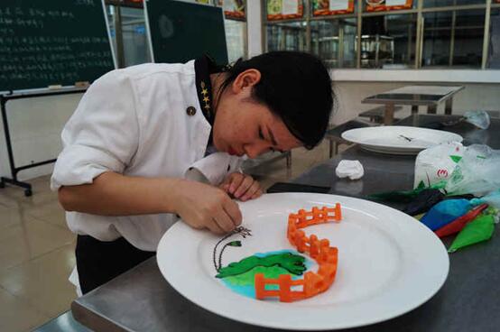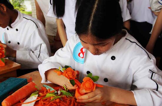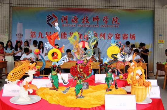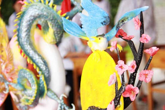 面对一堆普通的厨房食材,简单如一根萝卜、一个面团,你会想到做些什么?是不是会动手切块切片的烹调起来?你是否会想到它们可以成为一件件的艺术品呢?5月19日上午,旅游服务系烹饪专业的老师和同学们就让它们在自己的手下变为了艺术精品。