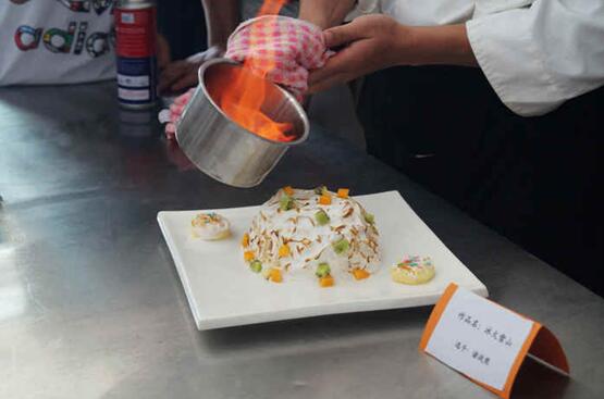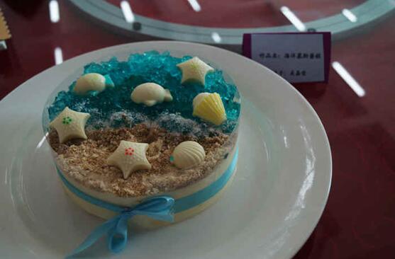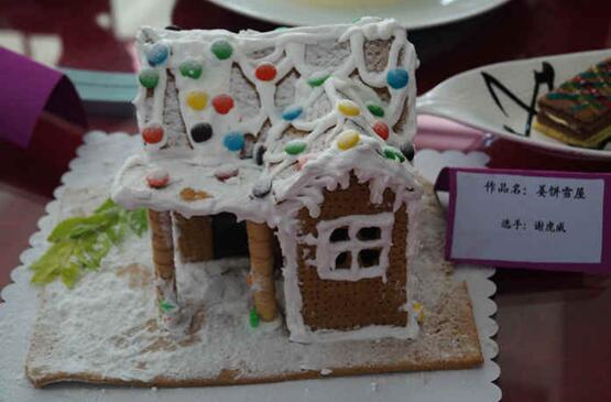 “面点制作”技能项目的作品多样,有创意蛋糕、慕斯蛋糕、泡芙、姜饼雪屋、冻品、创意小点心等等。选手们根据自身喜好自选品种制作,结合所学专业知识,充分运用面点制作技巧,再次引爆评委的舌尖味蕾。据本次大赛的指导老师梁自敏老师介绍,本次竞赛主要从难度系数、造型、卫生、创新这四方面作为评分标准。