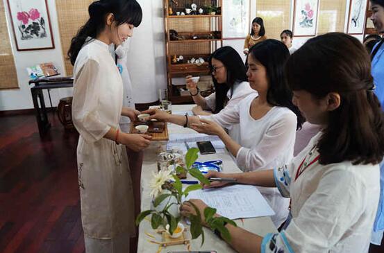 茶艺技能大赛在图书馆茶艺馆铭德堂拉开了帷幕。在清幽的环境下,伴着舒缓高雅的音乐旋律,选手们上演着优雅娴熟的茶艺。现场还请来高级茶艺师作评委,对参赛选手各个环节进行现场点评。帮助同学们提高茶艺水平,同时增加了同学们对茶艺表演的热情和对茶文化的认识。