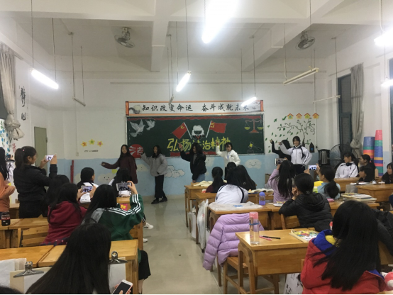 此次交流会中,邹意同学向同学们展示了她的个人才艺——“讲故事”,绘声绘色的表演收获了一帮小迷妹的阵阵掌声。此外,班上的同学也向学姐展示了自己的才艺——舞蹈串烧,此时的课室掌声与欢笑声不断。