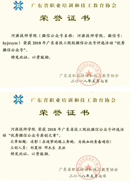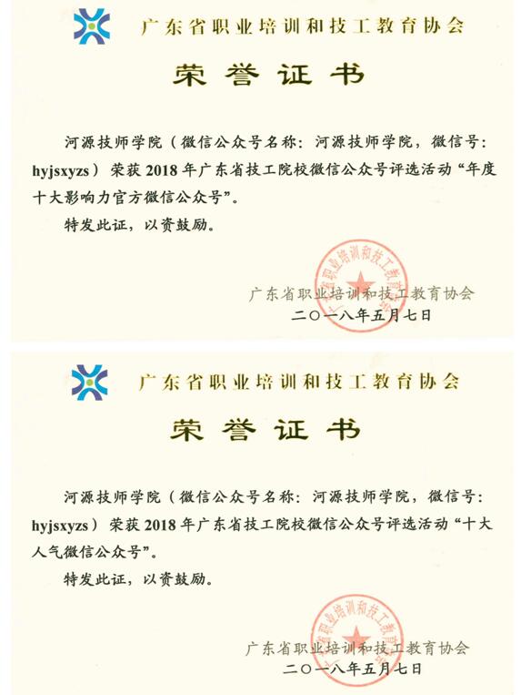 sunbet申搏在2018年广东省技工院校微信公众号评选活动中荣获多项殊荣