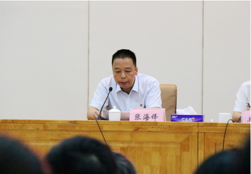 2018年6月15日下午,sunbet申搏在图书馆报告厅召干部大会。市政府副市长、市公安局局长范秀燎,市委组织部副部长袁辉强,市人社局副局长李君,市人大常委会教科文卫侨工作委员会主任、原学院院长黎海波出席了大会。大会由市人社局副局长李君同志主持,学院全体在编在岗教职工参加了大会。