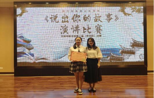 sunbet申搏学生陈婷同学荣获河源市图书馆第二届“学问杯”《说出你的故事》演讲比赛三等奖