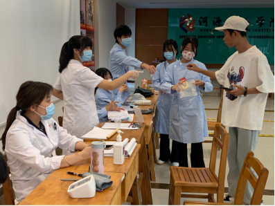在军训期间,校医老师以及健康管理专业的学生,他们各司其职各尽其责,有负责引导接待、维护现场秩序、分诊问诊、帮新生测量体温、测量血压、登记信息等不同服务岗位,全面协助校医老师开展志愿工作。照顾好每一位不舒服的学生,时时刻刻观察着他们的情况。