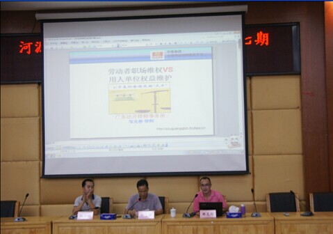 (图一)邱志才科长主持(中)、邹光彬律师主讲(右一)