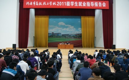 为使广大毕业生更好地认清就业形势,帮助其树立正确的就业观、择业观,4月9日,我校在体育馆召开了2011级学生就业指导报告会。会议由招生就业科邱志才科长主持,张海锋副校长主讲,2011级全体学生参加了会议。