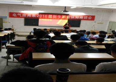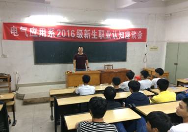 为了让学生了解相关职业的特点,就业形势、方针、政策和主要就业方向、就业途径,介绍本地区主要产业、行业、职业发展现状及趋势以及本专业毕业生的从业状况,树立新生学习专业的信心。电气应用系于2016年10月10日-12日晚在8104教室分别对电子技术专业、制冷专业、光伏专业、电气自动化专业等四个专业的16级新生召开了“职业认知座谈会”。
