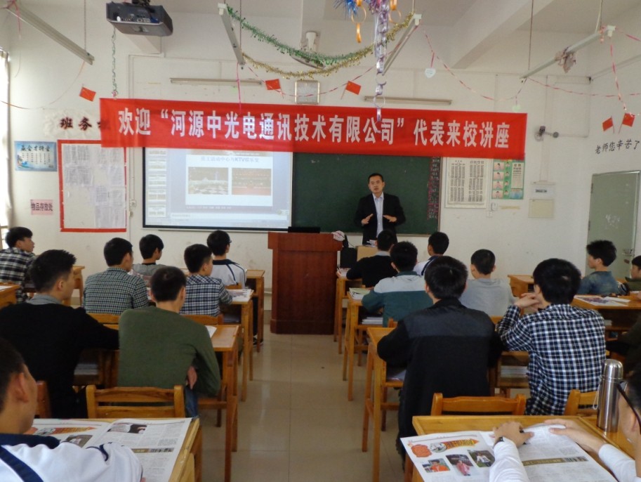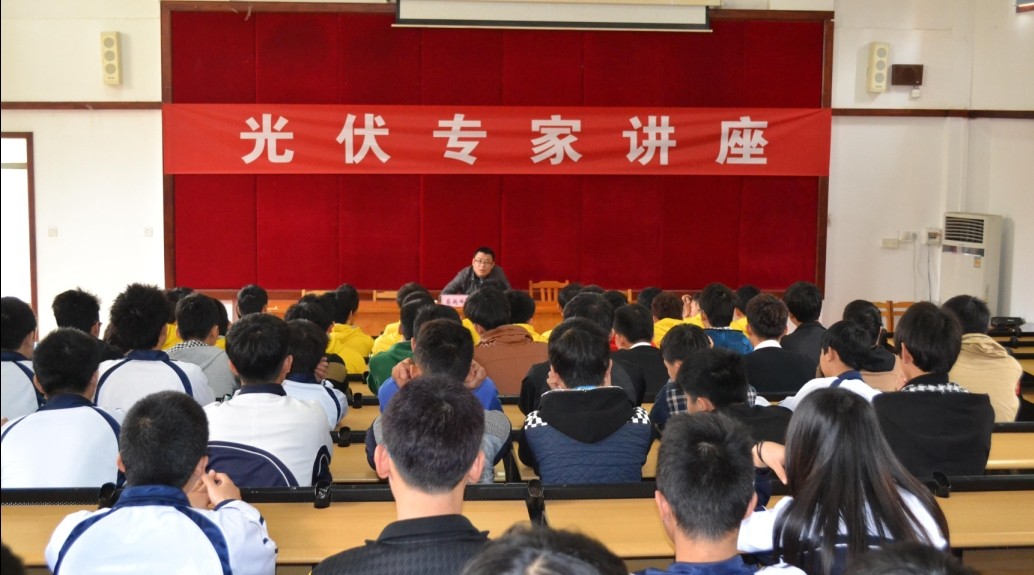 为提前让学生了解企业文化、用工需求、前沿资讯,2014年3月18日,电子电工教学部邀请了广东汉能光伏有限公司、河源市中晶太阳能技术有限公司、河源市中光电通讯技术有限公司、东芝家用电器制造(南海)有限公司的多名技术骨干为太阳能光伏发电技术专业、电气自动化专业、制冷设备安装与维修专业的学生召开专题讲座。