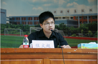 现供职于广东佗王药业有限公司的07级优秀毕业生程文超在会上发言。他追忆起刚踏上工作岗位时的甜酸苦辣,与师弟师妹分享了从学校到社会的点滴经验,既给出了合理的建议,又以真实的心路历程拉近了距离,令同学们大受鼓舞。