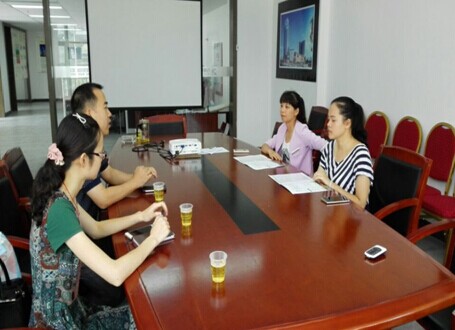 (图一)欧海标副科长、邹坤新副科长等与河源丽日集团的袁主任、陈主管在交流
